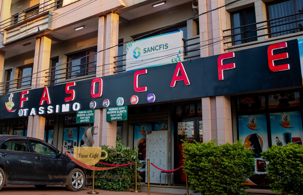 FASO CAFÉ est une structure installée à Ouagadougou et à Bobo Dioulasso; elle commercialise des cafés haut de gamme (cafés à capsules, machines et produits à capsules, produits CARTE NOIRE, produits TASSIMO, produits SENSEO, et autre type de café…) et thés.